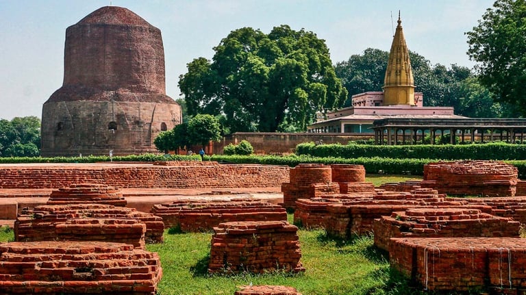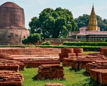 The sacred Buddhist site where Lord Buddha gave his first sermon. Explore the Dhamek Stupa, Archaeological Museum, and tranquil Deer Park.